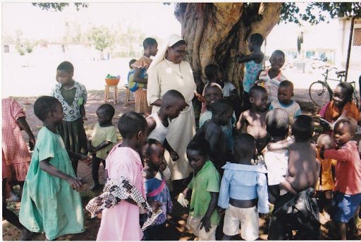 Sr. Lilia Helps feeds an orphaned child at providence home- Nkokonjeru in Uganda
