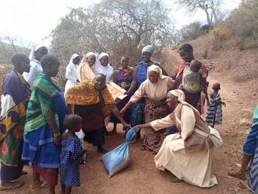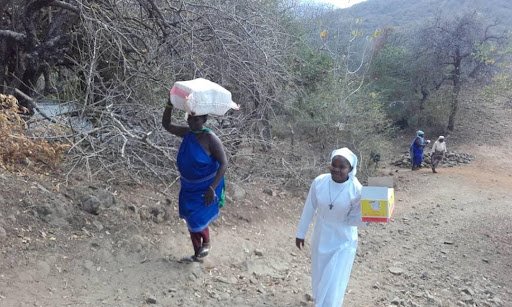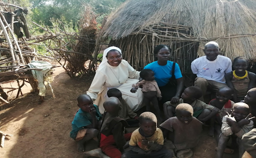 Sr Salome visiting the families of Immaculate and Esther that are starving due to severe drought